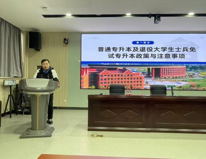 为进一步提升学生对我省专升本招生政策的了解,满足广大学子对更高层次学历的追求,12月13日,学生处受邀前往义乌工商职业技术学院举办专升本招生政策宣讲会。此次宣讲会由学生处副处长黄博卿主讲,招生办胡清扬参加。